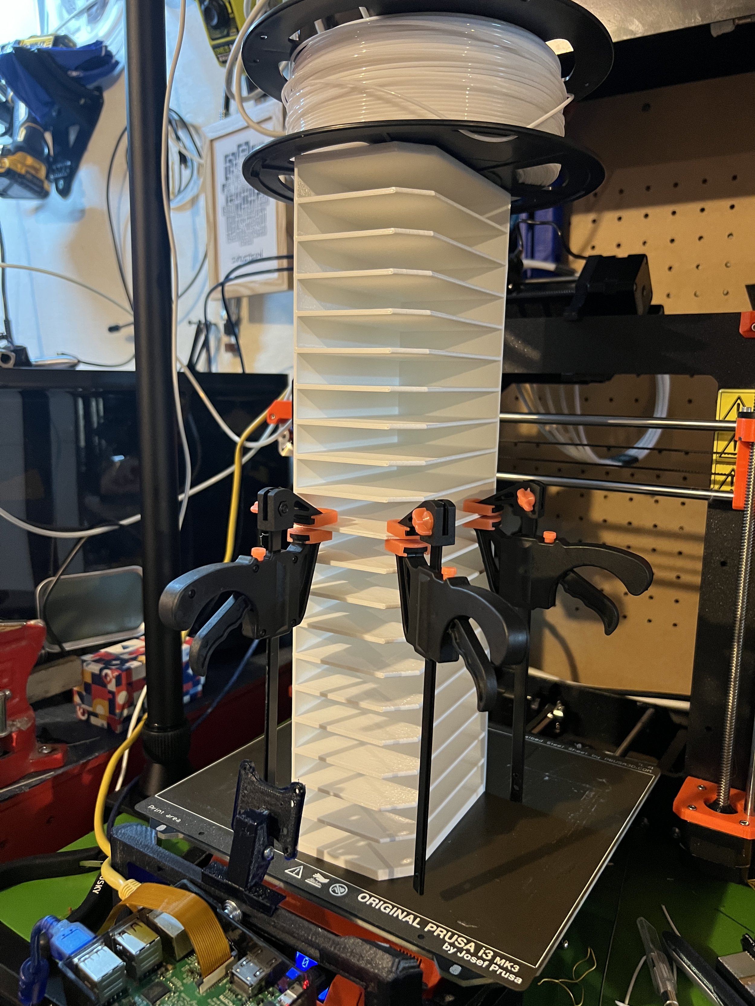 We also wanted to make sure the center of the walls being bounded were compressed so we used a partially used 1kg spool of material to weight it down.