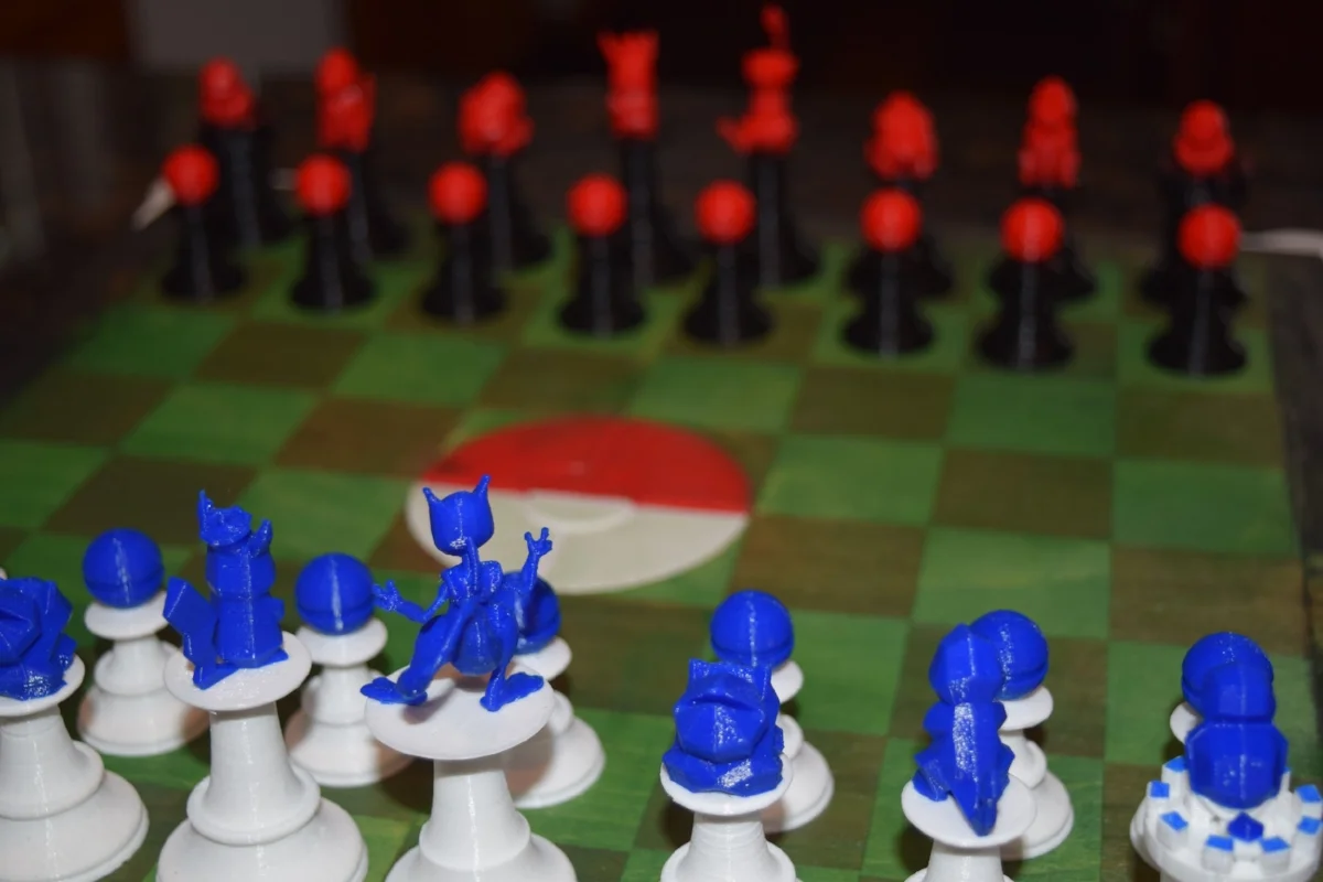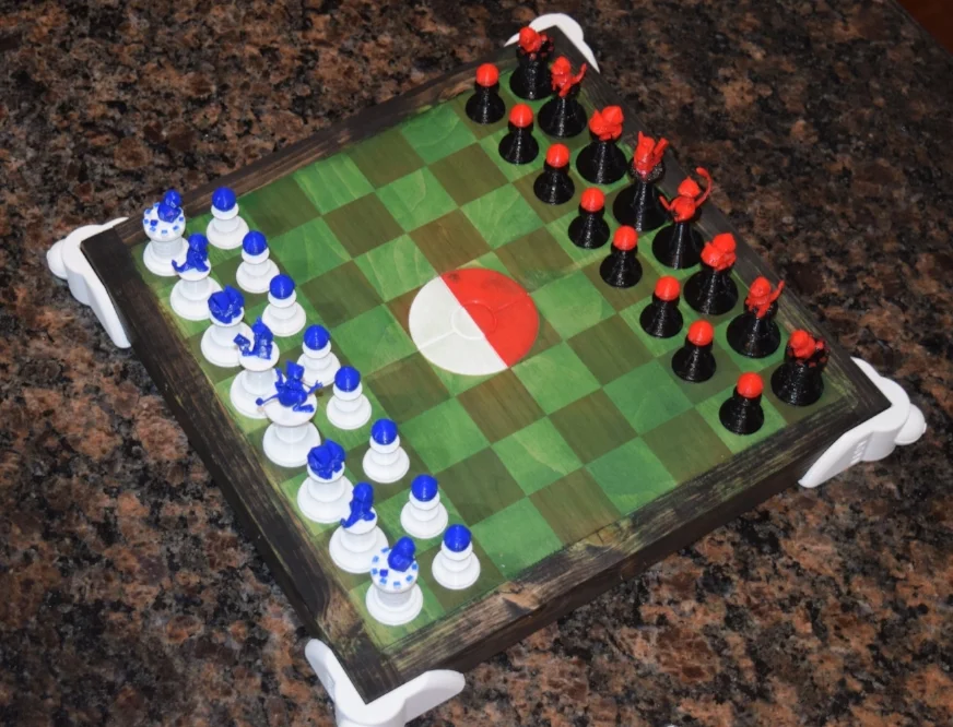 Custom Multi-Color Pokemon Stadium Chess Set and Board